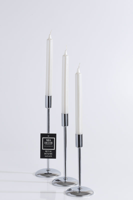 Set 3 Suporturi Lumanari Metal Argintiu – Design Modern